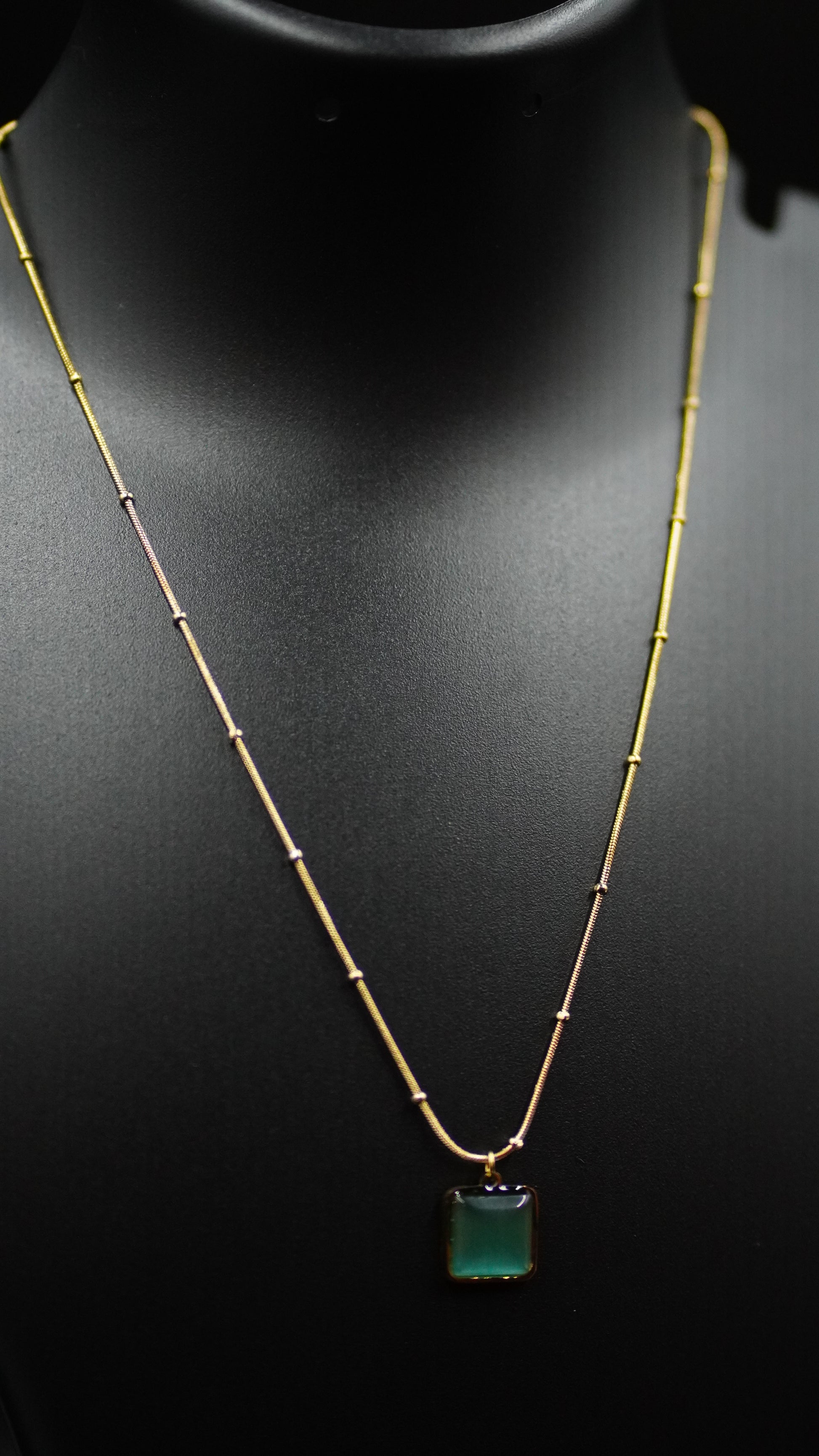 Elevate your elegance with the Sea Green Emerald Glow Pendant Necklace, designed for the modern muse. Crafted with a radiant emerald-hued stone set in a sleek gold-plated bezel, this necklace doesn’t just turn heads—it stays beautiful. Thanks to its anti-tarnish coating, the brilliance lasts, wear after wear.